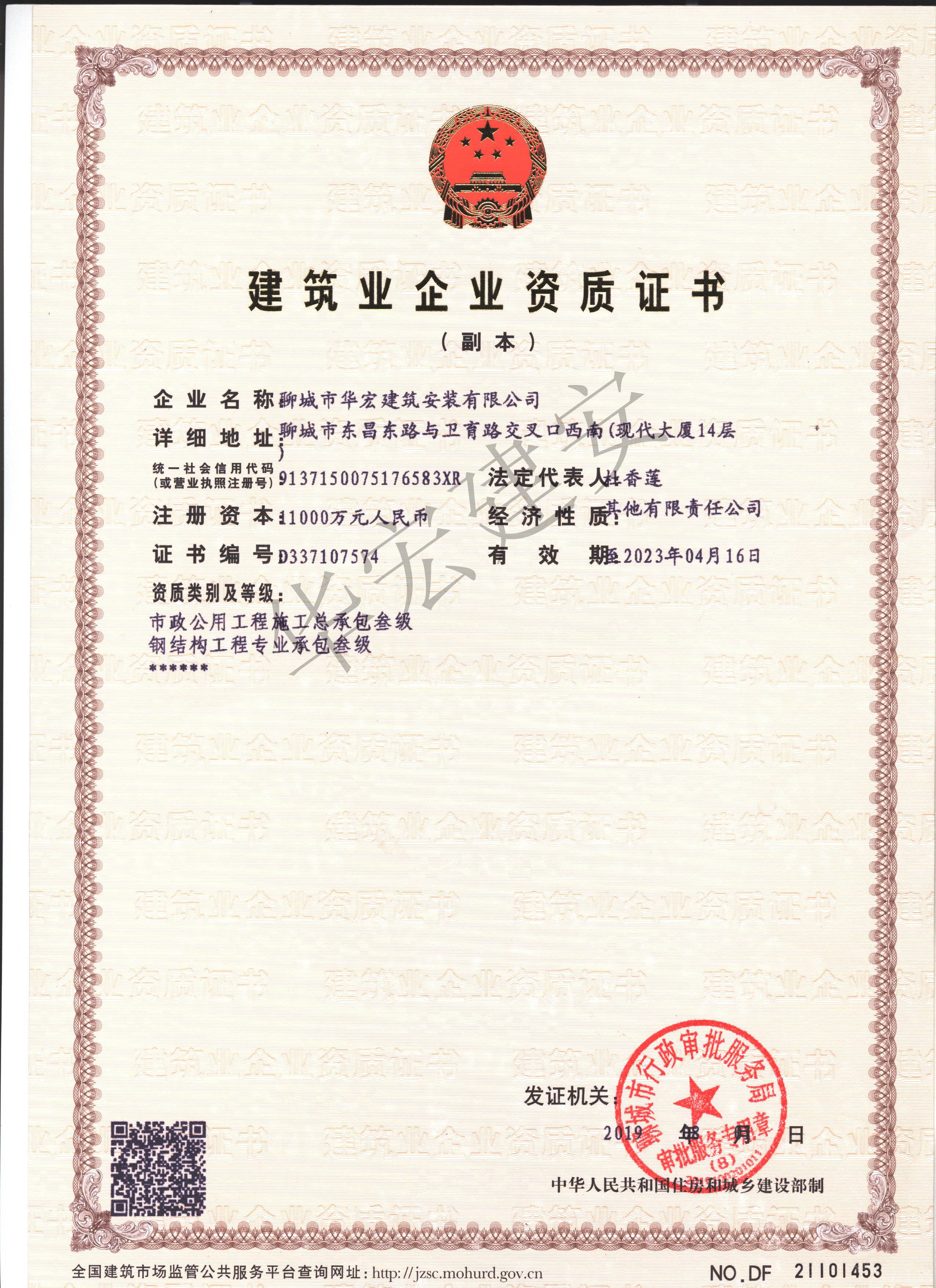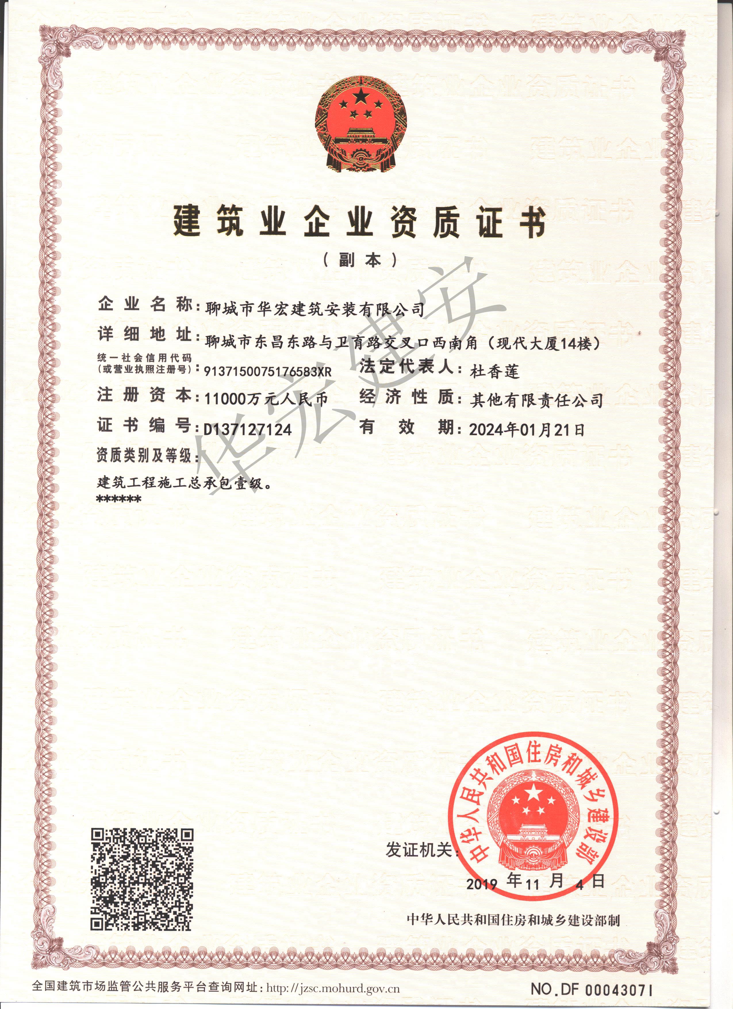 聊城市華宏建筑安裝有限公司成立于2002年5月,公司自2002年成立以來,不斷發(fā)揚 “敬業(yè)修身 打造精品 開拓創(chuàng)新 弄潮勇進”的創(chuàng)業(yè)精神,始終遵循“以質(zhì)量求生存、靠精品創(chuàng)品牌、憑信譽贏市場”的宗旨,認真奉行“科學 高效 一流”的質(zhì)量方針